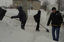Бүген “ Шәфкатьлелек яшәсен йөрәктә” акциясе кысаларында 8-9 класс егетләре яу кырында ятып калган авылдашларыбызга куелган һәйкәл янын кардан чистарттылар.