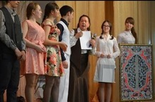 Төшке аштан соң җиңүчеләрне бүләкләү тантанасы башланды. Конференциянең “Драматургия. Театр яктылыкка, нурга илтә!..” номинациясендә 1 нче урынны яулаган “Диләфрүзгә дүрт кияү” спектакле, тамашачылар соравы буенча , кабат уйналды һәм һәммәсенең күңелен яулады.Көчле алкышлар озак тынмады. Нәҗибә апаның һәм мәртәбәле жюри әгъзаларының мәктәбебезнең театр коллективына җиткергән мактау сүзләре, теләкләре һәрберебез өчен зур горурлык иде.