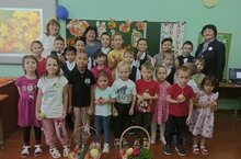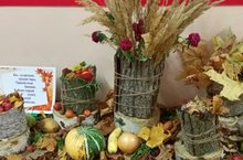 В коридоре школы была организована осенняя выставка. Каждый класс сделал к празднику осени поделки из природных материалов: овощей, фруктов, листьев, трав. -
