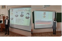 9 декабрь - Ватан геройлары көне уңаеннан, мәктәбебездә "Батырлык дәресләре" булды. «Патриот” отрядына йөрүче укучыларыбыз (җитәкчесе Сираҗиева Н.Ф.) 4 нче ”А” һәм 3 “А” сыйныфында сыйныф сәгате уздырдылар. Алар укучыларны үзебезнең җирлектән чыккан Геройлар белән таныштырдылар. Әлбәттә, Советлар Союзы Герое В.Ф.Ежковның батырлыгы турында да сөйләделәр. Герой кем ул? - соравына җавап бирделәр. Шулай итеп укучыларда патриотик рух тәрбияләүдә тагын бер матур адым ясадылар.