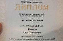Казан шәһәренең олимпиада үзәгендә 02 -06 нчы февраль көннәренә татар теле һәм әдәбияттан республика олимпиадасының йомгаклау этабы узды. Анда республика мәктәпләренең 4-11 нче сыйныфында белем алучы, олимпиаданың муниципаль турында жиңеп, югары нәтижәләргә ирешеп, иң югары балл җыйган укучылар катнашты. Безнен мәктәпнең 10 нчы сыйныф укучысы Иванова А. –призер (укытучысы Хәйретдинова Ф.Т.).