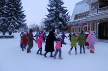 Школьники, посещающие зимний пришкольный лагерь «Зимушка» были в гостях у Деда Мороза и Снегурочки в их резиденции д.Н.Кырлай.Ребят встретили сказочные герои, они танцевали, посмотрели мультфильм, играли на свежем воздухе в «Перетягивание каната», « Бег в галошах» и тд.. Совершили экскурсию в дом - музей Г. Тукая.
