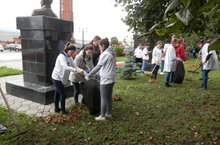 В рамках акции «Осенняя неделя добра – эстафета добрых дел» отряд «SR-Patriot» и ученики 10 классов, совместно с местным отделением партии "Единая Россия", приняли активное участие в уборке и очистке памятников, расположенных в центре города. Помощь в уборке территории нашего города стало традицией для нашей школы.