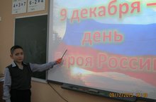 В 3 классах прошёл классный час, посвящённый Дню героя России. Учащиеся узнали, что в 2007 году по инициативе президента страны Владимира Путина было внесено изменение в федеральный закон Российской Федерации «О днях воинской славы и памятных датах России», в соответствии с которым 9 декабря было установлено днем памяти Героев Отечества. Им было интересно услышать о том, что Герою Российской Федерации вручается знак особого отличия — медаль «Золотая Звезда». Дети познакомились с именами современных героев России. Классный час был завершён стихами в память о героях: