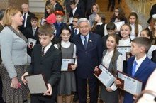 Вы счастливые люди, родившиеся в новом столетии в Татарстане. Это очень добрая республика, многонациональная, многоконфессиональная, мы разные, более 170 национальностей проживает в Татарстане, и мы гордимся тем, что живем дружно, уважаем друг друга. Я хочу пожелать вам на этом этапе хорошей учебы, для вас сегодня главное – прилежность, порядочность, чтобы после школы успешно поступить в высшее учебное заведение, получить профессию. Сегодня мы вручаем паспорта лучшим ученикам со всех районов, тем, кто уже показал успехи в учебе, в своей деятельности. Уважайте старших, любите родителей, храните традиции», – отметил Фарид Мухаметшин.Среди 32 ребят, которым посчастливилось получить паспорт из рук Председателя Государственного Совета РТ, были ученики нашей школы Рахматуллина Гульназ и Рахимзянов Камиль.