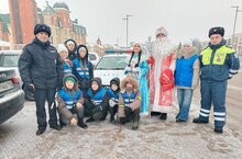 Полицейский Дед Мороз и Снегурочка,начальник отделения ГБУ «БДД» Мухаметзянова Э.Г. вместе с ЮИДовцами вручали водителям подарки –памятки и световозвращающие брелоки. Улыбки на лицах и слова благодарности последовали в ответ от горожан за проведенное мероприятие. -