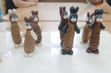 Бүген зурлар төркемендә чыршы күркәләрен җыеп, пластилин һәм күркәләрдән куяннар ясадык. -