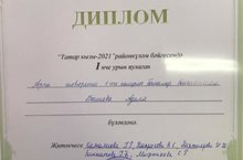 "Татар кызы-2021" районкүләм бәйгесендә катнашып, 1 нче урын яулаган мәктәпкә әзерлек төркеменнән Валиева Адиләне чын күңелдән котлыйбыз! Бәйге барышында без аның никадәрле тырыш, тыйнак һәм эшчән татар кызы булуына күп тапкырлар инандык. Адиләгә киләчәктә дә иҗади уңышлар, яңадан яңа үрләр яулавын теләп калабыз.