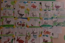 Менә шушы табышмак белән башланып китте бүген рәсем шөгыле. Балалар зур тырышлык белән озын колаклы куян рәсемен ясадылар. " Куян син кайда? "уенын уйнадылар.Шөгыль ахырында рәсемнәрдән күргәзмә оештырдылар. -