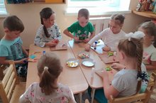 Дети подготовительной группы готовятся поздравить с праздником своих любимых мам. Они решили сделать красивые открытки в форме букета. Все очень постарались. Результат превзошел ожидания.