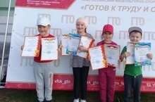 Сегодня наши дети подготовительной группы приняли участие в сдачи норм"ГТО".В перечень требований для самых юных участников первой ступени входили три обязательных испытания.Это наклоны вперед из положения стоя на скамейке,бег 30 м (челночный бег 3*10м),прыжок в длину с места.Наши дети прошли все испытания на "ура".Всех наградили грамотами.Молодцы!