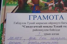 25 апрель көнне бакчабызда тәрбияләнүче балалар,Г.Тукай мирасын өйрәнүгә багышланган"Сандугачтай моңлыТукай теле"районкүләм бәйгедә катнашып 1 урын алып кайттылар.Алар Г.Тукай әсәрләренә нигезләнгән "Сөткә төшкән тычкан маҗаралары"дигән театр күрсәттеләр.Балаларга киләчәктә дә уңышлар телибез.