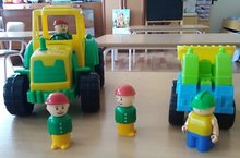 Сегодня в средней группе- День строителя.В этот день ребята вместе с игрушечными строителями обогатили свое представление о труде взрослых, узнали о разнообразии взрослых. На прогулке с увлечением строили песчаные дома и замки.