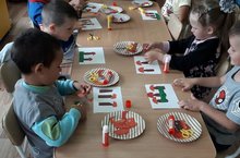 Сегодня с детьми старшей группы мы разыграли настольную игру "Гусеница".Задача детей состояла в том,что они должны были ,определив цифру на гусенице,найти картинки с этим же количеством предметов.Благодаря этой игре дети вспомнили и постарались закрепить знакомые цифры от 1 до 10,внимание,мышление,память,логику и умение считать предметы на картинке.
