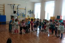 Кечкенәләр төркеме балаларының физик тәрбия шөгыле уен формасында оештырыла. Алар барысы да уеннарда актив катнашалар. Алар бүген дә үзләренә охшаган "Поезд" уенын уйнадылар. Бу уен балаларны дус, тату, бердәм булырга өйрәтә.