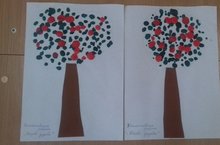 Осень славиться своим богатым урожаем. В садах и огородах люди собирают фрукты и овощи. А дети младшей группы решила запечатлеть свои знания о фруктах в своих работах. Вот какие яблоки и ягоды они "собрали " к столу.