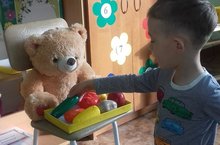 Уртанчылар төркеме балалары уйный-уйный татарча сөйләшергә өйрәнә. Балалар, аюны сыйлап, яшелчә атамаларын һәм төсләр лексикасын ныгыта.