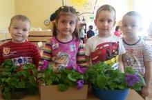 Вот и настала пора высаживать цветы на клумбы! Очень скоро увидим результат наших трудов на участке любимого детского сада.