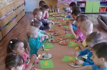 Дети второй младшей группы №1 очень любят делать аппликации. Сегодня они узнали много нового о домашних питомцах и решили сделать аппликацию на тему "Цыплята на лугу". Где они учились составлять композицию из нескольких предметов, продолжили отрабатывать навыки аккуратного наклеивания.