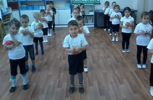 Уртанчылар төркемендәге балалар физик тәрбия шөгелендә туплар белән төрле күнегүләр ясыйлар.Туплар, кыршау белән яратып, зур теләк белән уйныйлар. Кече яшьтән физик күнегүләрнең әһәмиятен күреп үсәләр.