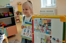 Уртанчылар төркеме балалары белән "Иң яхшы дустым-светофор" дигән темага әңгәмә үткәрдек. "Юл аркылы дөрес чык" уенын уйнадык. Балаларның юл йөрү кагыйдәләре, юл билгеләре турында белемнәрен ныгыту һәм киңәйтү өстендә даими эш алып барабыз.