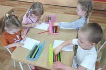 Бакчабызның кечкенәләр төркеме балалары янына цирктан Клоун кунакка килде. Балаларга төсле карандашлар белән төрле төстәге түгәрәкләр ясарга тәкъдим итте. Карандаш белән сак, пөхтә эшләргә кирәклеген исләренә төшерделәр .