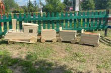 Урам мәйданчыгын үз тырышлыклары белән тагын да матур, яңа ,төрле төстәге корылмалар белән бизәделәр. Искиткеч матур вагоннары белән поезд, кошлар өчен ашханә, туп белән уйнарга җайланма, утыргычлар, юл йөрү кагыйдәләрен өйрәнү өчен өстәлләр, гөлләр үстерү өчен тартмалар, агач күпер әллә каян күренеп, балаларны уенга җәлеп итеп тора.