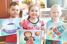 В подготовительной группе была проведена аппликация "Полёт на Луну" в честь Дня Космонавтики.