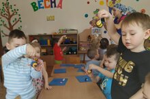 Сегодня в младшую группу № 1 прилетела красавица-пчелка. Вместе с воспитателем дети учились волшебству: превращать контейнер из-под киндер в пчёлку. Дети учились лепить крылышки, полоски, из маленьких "колбасок" делать лапки. В конце занятия дети исполнили со своими героями зажигательный танец