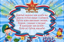 23 нче февраль - Ватанны саклаучылар көне уңаеннан, балалар бакчаларында, мәктәпләрдә бәйрәм чаралары башланды. Ватанны саклаучылар көне балаларда патриотизм, сугышчыларга хөрмәт, Ватаныбызның иң яхшы традицияләренә карата бер-береңне хөрмәт итү хисе тәрбияли. Бу чын ир — атлар -кыю, җитез, ышанычлы , шулай ук Ватанны саклаучылар булып үсәчәк малайлар бәйрәме.