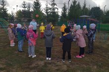 Безнең балалар бакчасында тәрбияләнүчеләр зур һавада физкультура белән шөгыльләнәләр. Урамда физкультура белән шөгыльләнүдән балалар зур активлык, мөстәкыйльлек, инициатива күрсәтергә мөмкинлек ала. Табигатьнең табигый факторлары организмны чыныктыра, салкын тиюгә каршы торуны арттыра.Һавада шөгыльләнүнең максаты: максималь савыктыру эффектына ия, зур киңлектә хәрәкәт итәргә мөмкинлек бирә, физик активлыкны көчәйтә. -