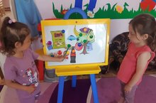 Бүген бакчабызда рәсем сәнгате көне. Икенче кече яшьтәге төркемгә йөрүче балалар "Кояшлы җылы көн" дигән темага рәсем ясадылар. Бурычлар: кояшның нурларын ясарга, бер юнәлештә сызыктан чыкмыйча буярга өйрәтү.