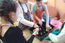 Мәктәпкә әзерлек төркеменә йөрүче балалар суган утырттылар.