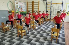 Многие общеразвивающие упражнения проводятся с предметами. Они создают у детей интерес к занятиям, оказывают значительное влияние на освоение движений, развитие сенсорики, двигательных качеств и способностей./Мәктәпкә хәзерлек төркемендә физкультура шөгыле.