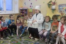 Сегодня к ребятам средней группы №1 пришел в гости доктор Айболит, который рассказал детям о том, как надо следить за своим здоровьем, ухаживать за глазами, ушами и зубами. Из беседы ребята узнали о пользе витаминов и о том, в каких овощах, фруктах и других полезных продуктах они прячутся. Дети с удовольствием отгадывали загадки Айболита. Вместе с ним рассматривали и собирали картинки, рисовали полезные витаминки. Завершилась встреча чтением произведения К. Чуковского «Айболит». Попрощавшись с доктором, ребята обещали выполнять все правила личной гигиены и пригласили заходить почаще к ним в гости.