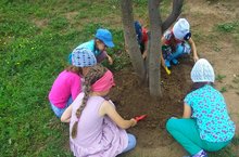 Дошкольное детство - начальный этап формирования личности человека, его ценностей ориентации в окружающем мире. В этот период закладывается позитивное отношение к природе, к себе и окружающим людям.Осознанное правильное отношение к природе строится на чувственном восприятии природы, эмоциональном отношении к ней и знаниях об особенностях жизни, роста и развития отдельных живых существ. Наличие растений, деревьев и огорода в детском саду способствует осуществлению непосредственного контакта ребёнка с объектами природы, наблюдения и практическая деятельность по уходу за растениями.Сегодня дети подготовительной группы вместе с воспитателем Газизовой И.В. в процессе трудовой деятельности рыхлили почву вокруг деревьев. Повторили зачем и как необходимо рыхлить почву? Уплотненная земля вредна. Она должна быть рыхлой, т.к. через рыхлую землю хорошо проходит влага и воздух, свободно развиваются корни растений.