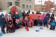 Детям старшей группы трудовая деятельность - расчищение дорожек и игрового участка от снега дарит большую радость, они замечательно справляются с этой работой! Зафиксировав положительный настрой, можно всегда получить хорошую отдачу. Пример родителей немало важен, посмотрев на снежную фигуру, выполненную в процессе совместного труда родителей данной группы, дети решили так же хорошо поработать. Эти снежные фигуры еще очень долго будут рано утром встречать и радовать детей!