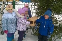 Без, беренче номерлы уртанчылар төркеме әти-әниләр белән берлектә кошларга җимлекләр ясадык. Кыш җитү белән кошларга җим табуы авырлаша. Шул уңайдан җимлекләр булдырылды. Әти-әниләр бик теләп катнашты. Бу эш- балаларда кошлар, аларның үзенчәлекле яклары турындагы белемнәрен камилләштерү, табигатьне саклауга файда китерүләре турында белемнәрен арттыру, кошларга карата сакчыл караш,мәрхәмәтлелек тәрбияләү иде. Узләре ясап килгән җимлеккә җимнәр салу бала өчен тагын да куану хисләре тудырды.