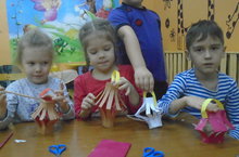 Дети подготовительной группы №2 очень любят творить. Ообенно им нравится работать с бумагой. Складывание бумаги очень увлекательный и удивительный вид творчества. Ведь у ребёнка дошкольника развивается мышление, память, творчество. Чтобы ребёнку было легче освоить этот вид творчества, необходимо начинать с простейшего; складывать бумагу пополам, по диагонали, стараться, чтобы уголки и края листа бумаги совпадали. Занимаемся мы занятиями оригами во второй половине дня. Все наши изделия из бумаги начинаются со складывания квадрата по диагонали, и с каждым занятием дети все лучше и лучше осваивают этот способ складывания. Сегодня мы сделали дом. Детям очень нравится заниматься оригами.