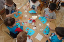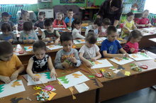 Свои наблюдения за обитателями аквариума дети старшей группы №2 решили запечатлеть в изобразительной деятельности, воплощая в своей работе по аппликации всю красоту водного мира. Детям удалось передать в изображении не только основные свойства изображаемых предметов, но и характерные детали, преобразовывая одни геометрические фигуры в другие. Выбор разнообразных оттенков цветов обитателей аквариума, умение воплощать в одном предмете целый сюжет позволил ребятам создать законченный красивый рисунок.