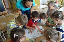 "И сегодня нам было интересно с нашим воспитателем". Увлекая детей интересной деятельностью - развивая мелкую моторику, дети создали с Гульфинур Исрафиловной красивое деревце/ 08.08.2014