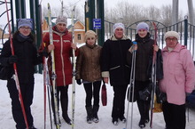 Наша команда спортсменов на соревновании по лыжным гонкам среди профсоюзных организаций образовательных учреждений Арского муниципального района. 20.02.2014