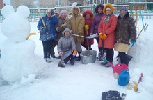 Постройки из снега в нашем детском саду получаются яркие, красочные, разнообразные. Сколько радости, восторга можно увидеть в глазах детей, когда в образах снежных фигур они узнают любимых персонажей. Все это огромный труд. И благодаря совместным усилиям педагогов, воспитанников и их родителей снежные постройки появляются на всех игровых площадках детского сада. Дети трудятся наравне со взрослыми: они сгребают снег лопатками, утрамбовывают, чтобы придать постройке прочность, украшают цветными льдинками. Цветные льдинки наши дети делают вместе с педагогами в детском саду. Дети заранее заготавливают емкости разной величины и формы, заливают в них цветную воду и выставляют на мороз, технология изготовления им знакома.