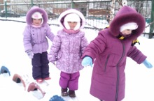 Ура! Всю ночь шел снег. И все утро... И весь день... Наконец-то природа нас побаловала в этом году!Детишки строили снежную горку и падали в снег, оставляя на нем забавные фигуры!