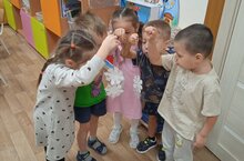 Снежинки - это скопление кристалликов льда. С детьми было проведено познавательное занятие "Снежинка в гостях у ребят", в ходе которого дети узнали откуда берутся снежинки, какие они бывают, и почему все снежинки разные по форме. Проводили дыхательную гимнастику " Ветер дует на снежинки ". Читали стихи о снежинках, рассматривали иллюстрации снежинок, слушали детские песни о первом снеге и снежинках. Также выкладывали снежинки из счётных палочек по образцу.