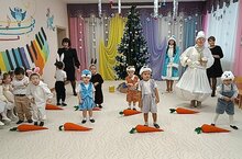 Дети пришли на представление весёлые, нарядные: мальчики в костюмах зверушек, а девочки в костюмах снежинок. К малышам приходил Снеговик, который хотел вместе со всеми встречать Новый год и веселил всех играми и забавами. И, конечно, кульминацией утренника была встреча с главными героями праздника – Дедом Морозом и Снегурочкой, малыши с особым удовольствием им пели, читали стихи и танцевали.