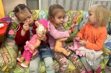 В младшей группе воспитатели с малышами играли в сюжетно-ролевую игру «Доктор Айболит». Маленькие герои с огромным удовольствием проигрывали свои роли, лечили болеющих кукол и хором малыши проговаривали, что нужно делать, чтоб оставаться здоровыми. -