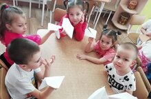 Бүген, 28 нче февраль көнне кечкенәләр төркеме балалары белән очкычлар ясадык. балалар Доктор Айболитка Африкага бару өчен очкычны бик тырышып, кызыксынып эшләделәр. Бу эш кул чукларын ныгытырга, игътибарны үстерергә ярдәм итә.Балаларда мөстәкыйльлелек тәрбияләнә.