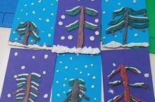 Сегодня за окном белый и пушистый снег. И мы с детьми подготовительной группы поставили цель слепить деревья в снегу. Используя метод отщипывания и надавливания. Посмотрите какая красота у нас получилась.