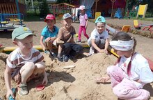 Сегодня у наших детей есть много современных игрушек. Но игры в песочнице не устарели. Песочница по-прежнему излюбленное место малышей. Ребята старшей группы №2 любят насыпать песок в формочки, делать разные фигурки. Строя песочные замки, ребята создают собственный мир, выдумывают и фантазируют и в тоже время учатся работать и добиваться цели. Помимо развлечения, оно имеют и образовательное значение, помогая детям знакомиться с разными ощущениями, тренировать координацию движений и глазомер.Игры с песком - самое любимое занятие на летней прогулке!